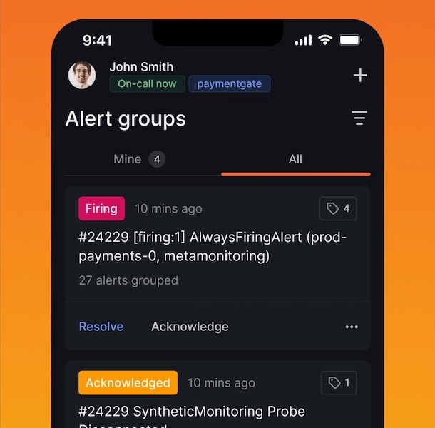 The Grafana IRM mobile app enables you to manage and respond to critical system events from wherever you are. Designed for on-call engineers, this app provides reliable alert notifications, on-call reminders, and a robust set of features to simplify on-call duties and incident response.